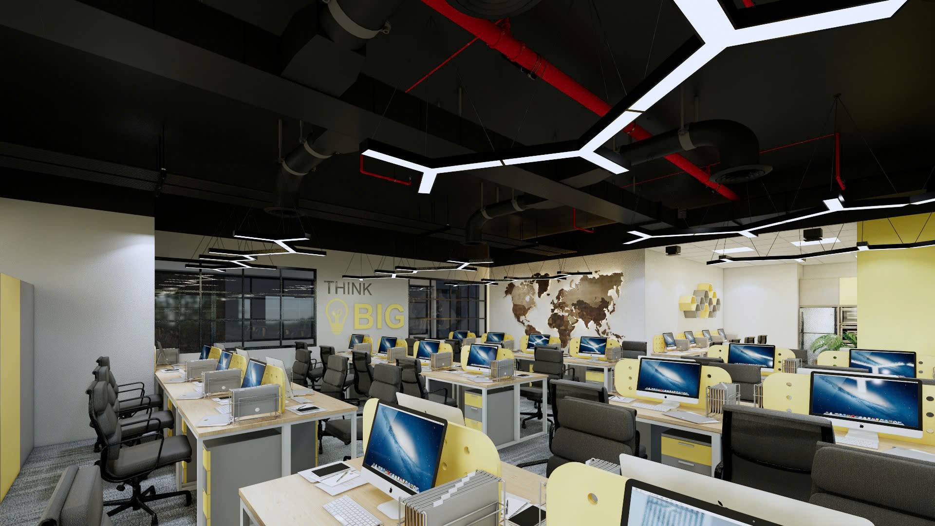 - Văn phòng thiết kế hiện đại, ánh sáng tự nhiên, tầm nhìn đẹp.